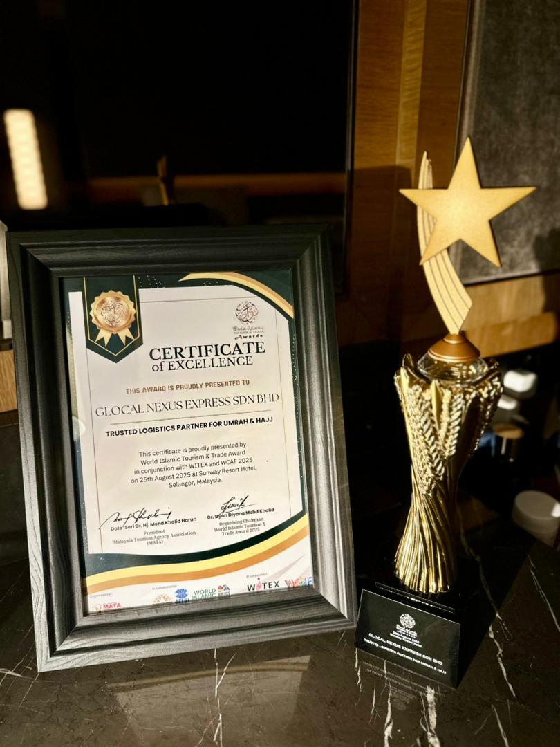 By achieving this accolade, Glocal Nexus Express has set a new benchmark for service quality in the logistics sector, positioning your organisation as a key player in supporting Malaysia’s standing as a hub for Islamic tourism.